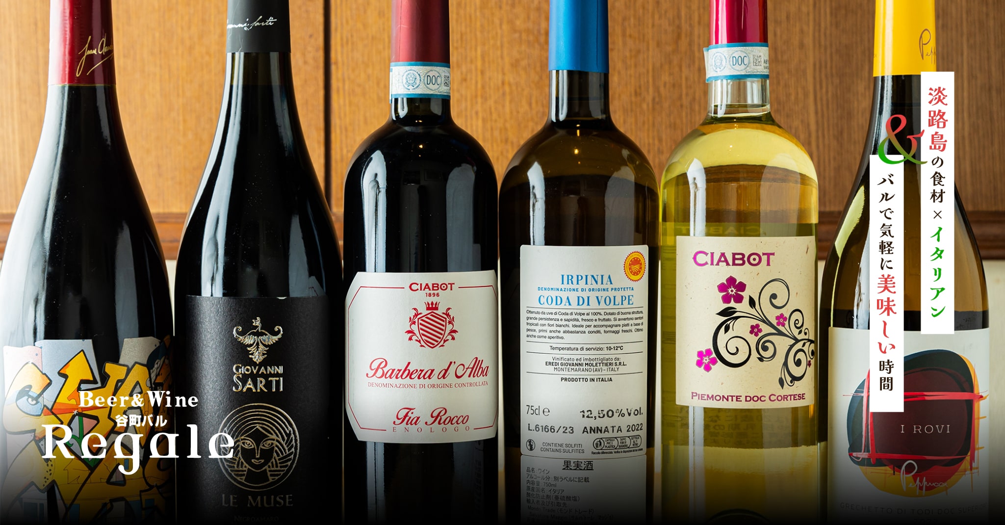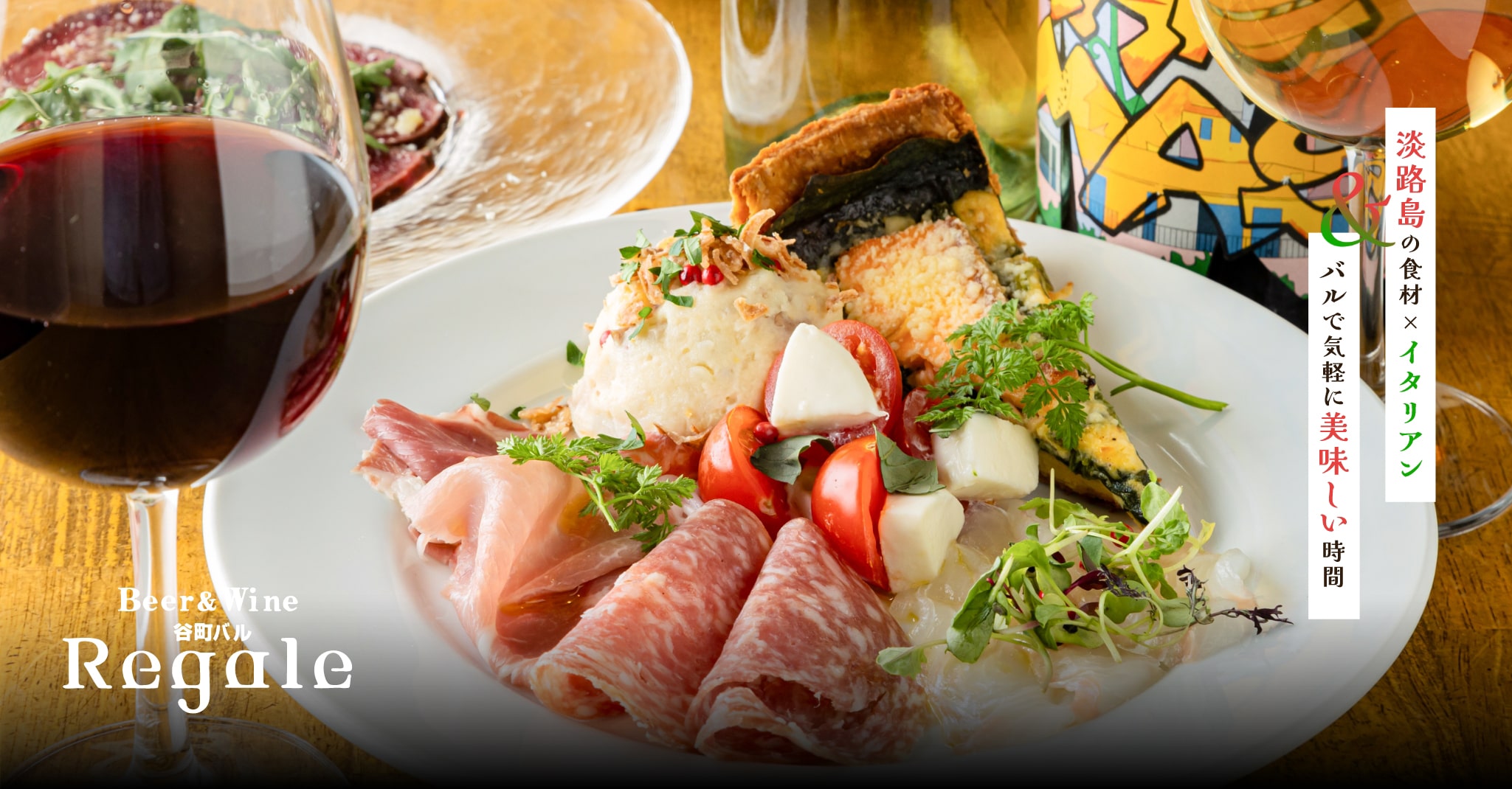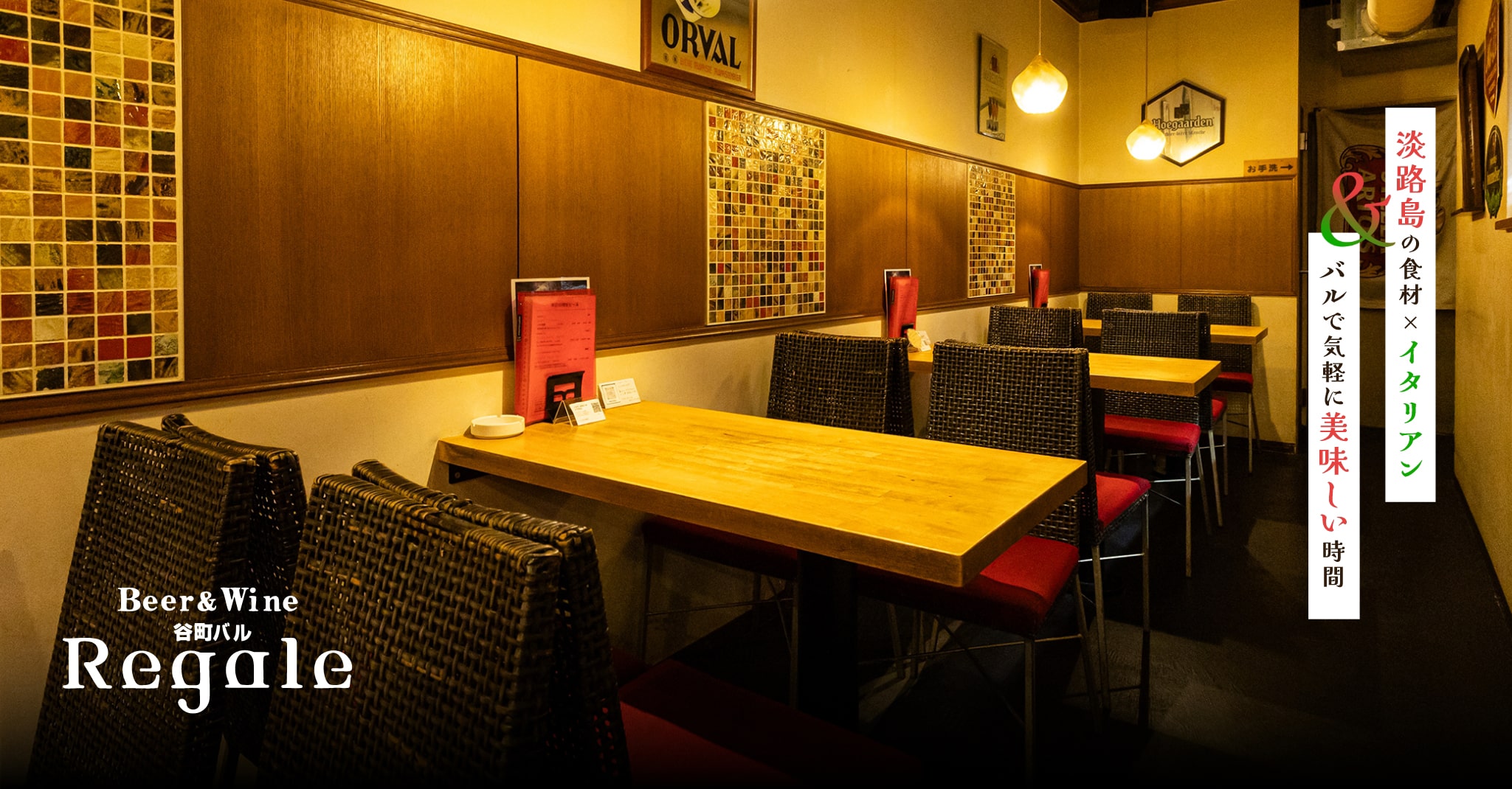 「谷町バル Regale」では、淡路島直送の厳選食材を使用したこだわりのイタリアンをご提供。イタリア直送のワインとの絶妙なペアリングが、料理の美味しさをさらに引き立てます。さらに、60種以上のクラフトビールもご用意。デートや女子会、仕事帰りのお食事にもぴったりのカジュアルな空間で、楽しく美味しいひとときをお楽しみください。