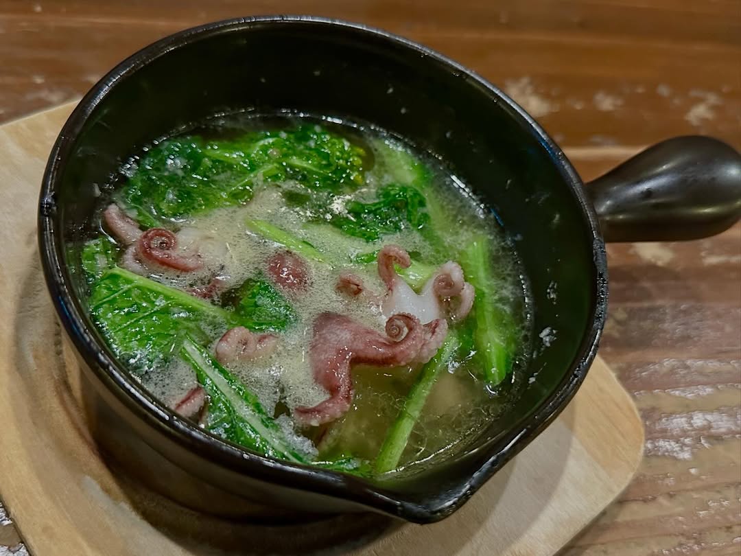 グツグツ熱々のアヒージョにたくさんのイイダコ🐙