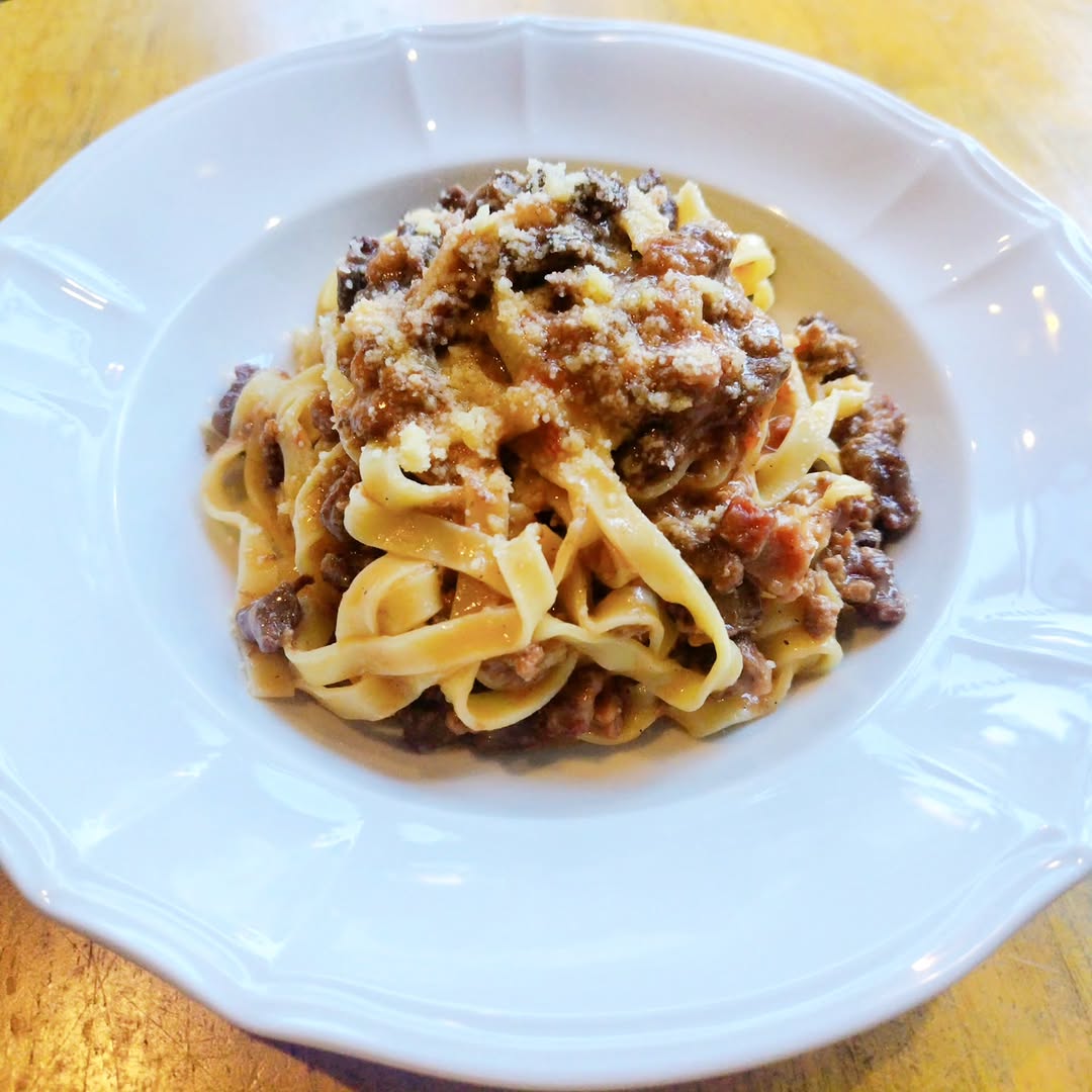 淡路島の黒毛和牛、椚座牛をたっぷり使ったボロネーゼです👍 淡路島麺業のタリアテッレで仕上げました😆