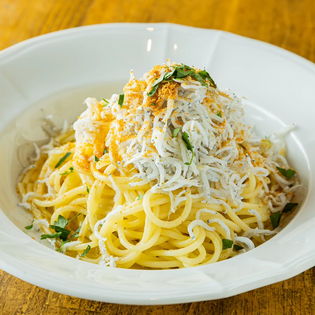 しらすとカラスミの相性バツグン😆 淡路麺業の生パスタで仕上げました❗️