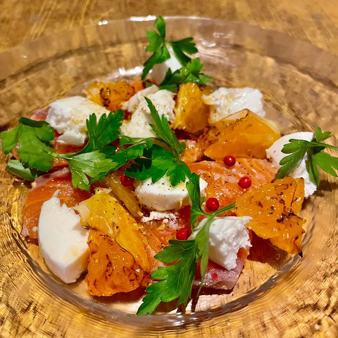 【焼きみかんとサーモンとモツァレラチーズのカプレーゼ】
